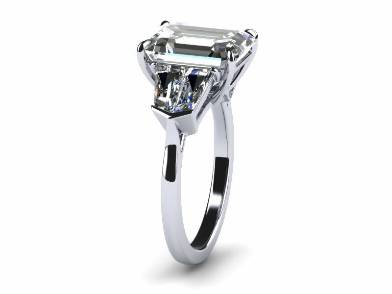 3ct Emerald Cut Diamond Side Duo Baguette Engagement Ring 14k White Gold Finish