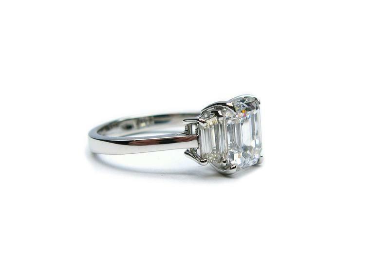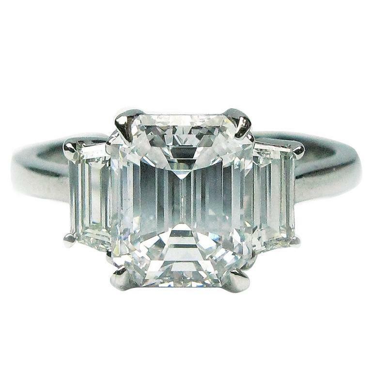 3Ct Emerald Cut Diamond Unique Trilogy Engagement Ring 18K White Gold Finish