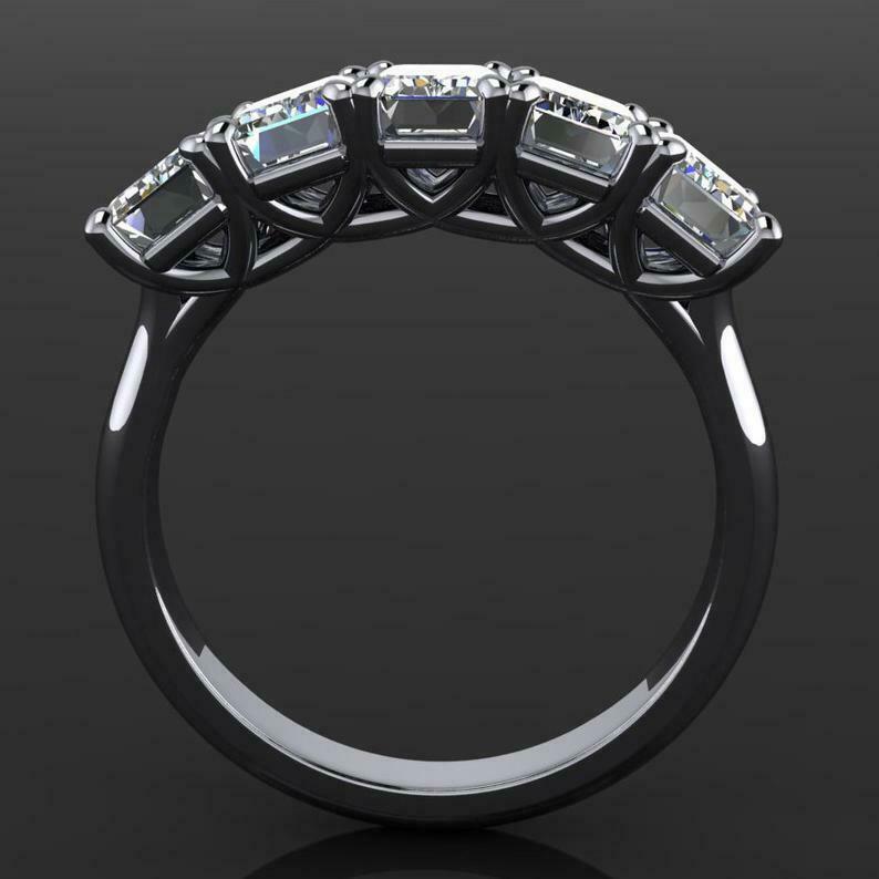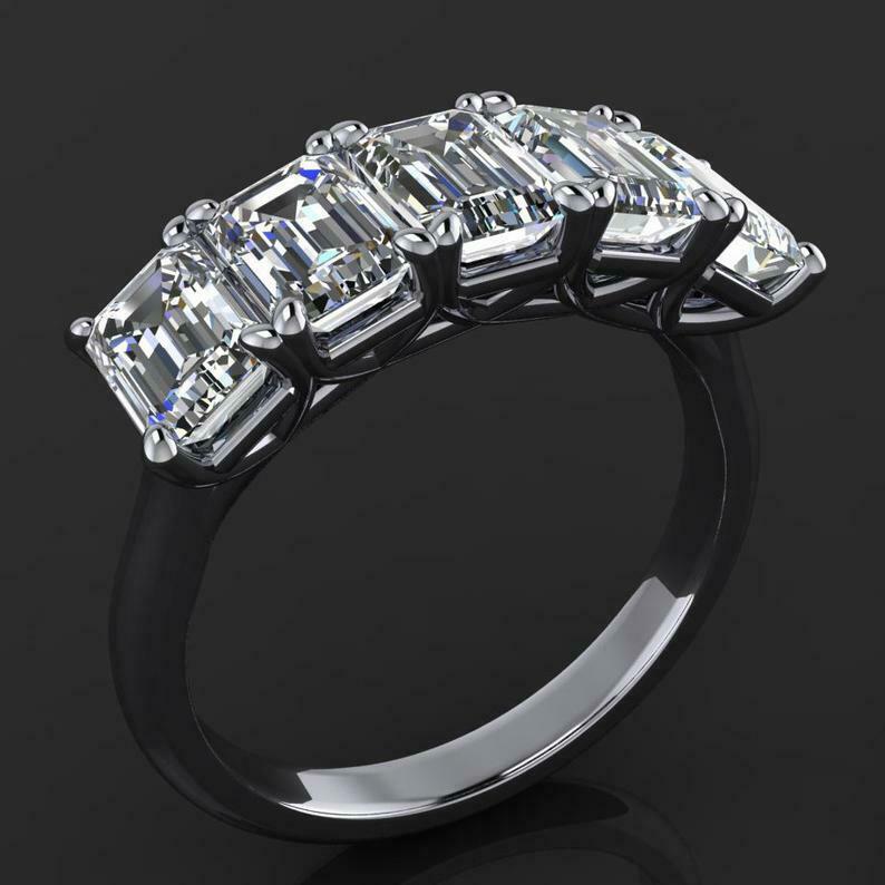 3ct Emerald Cut Diamond Wedding Band 14k WhiteGold Finish Five Stone Anniversary