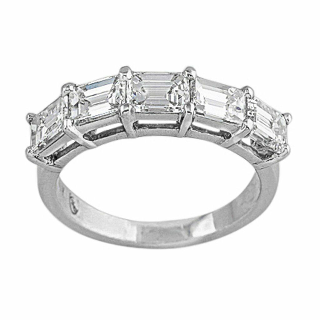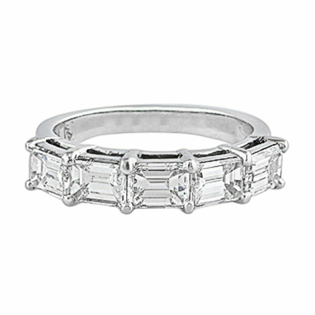 3Ct Emerald Cut VVS1/D Diamond Half Eternity Wedding Band 14K White Gold Finish
