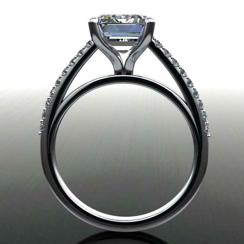 3ct Emerald Cut VVS1D Diamond Round Accents Solitaire Ring 14k White Gold Finish