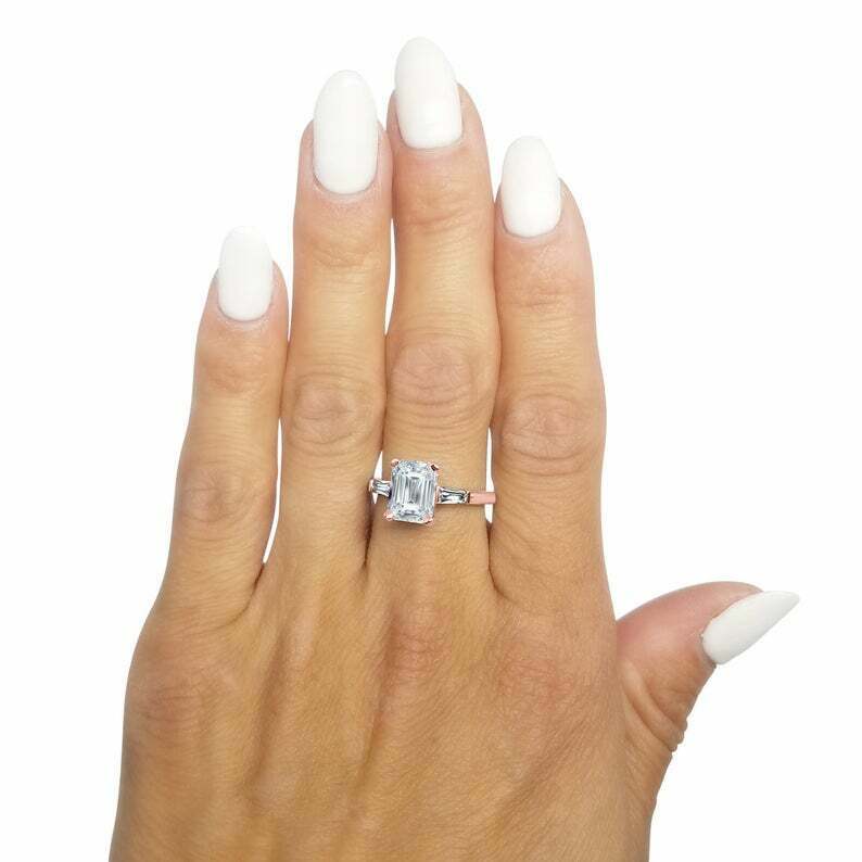 3ct Emerald Diamond Engagement Ring Baguette Accents Trilogy 14k Rose Gold Over