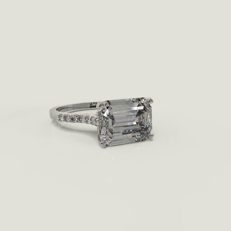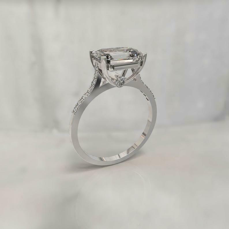3ct Emerald Cut Diamond Engagement Ring Round Accent Solitaire 14k White Gold Finish