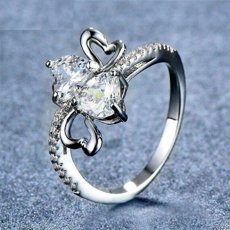 3ct Heart Cut Diamond Engagement Ring 14k White Gold Finish Heart Shape Bypass