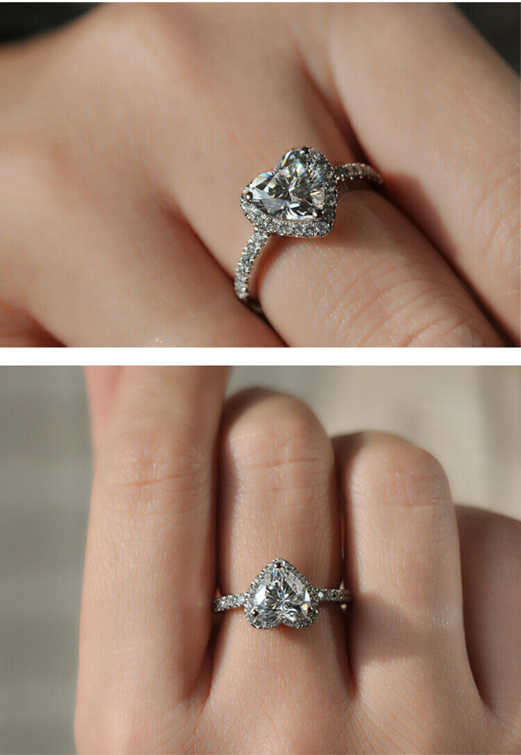 3Ct Heart Cut Diamond Halo Round Accent Engagement Ring 14K White Gold Finish