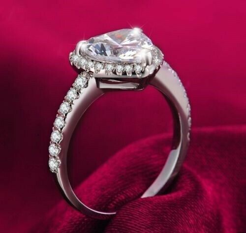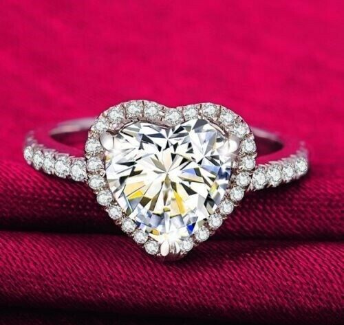3Ct Heart Cut Diamond Halo Round Accents Engagement Ring 14K White Gold Finish