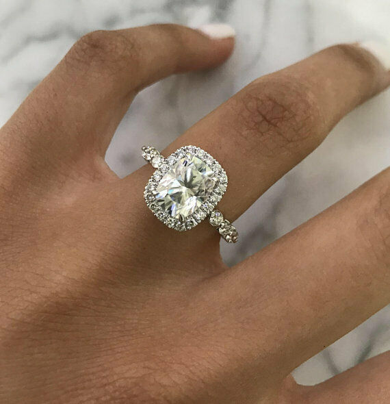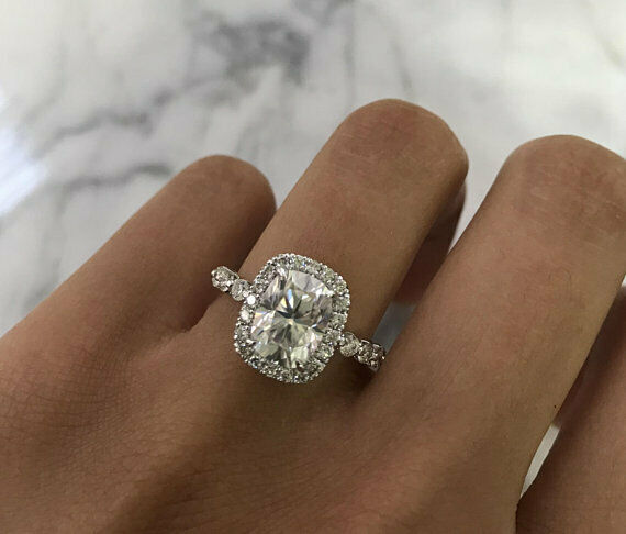 3Ct Long Cushion Cut Diamond Accents Halo Engagement Ring 14K White Gold Finish