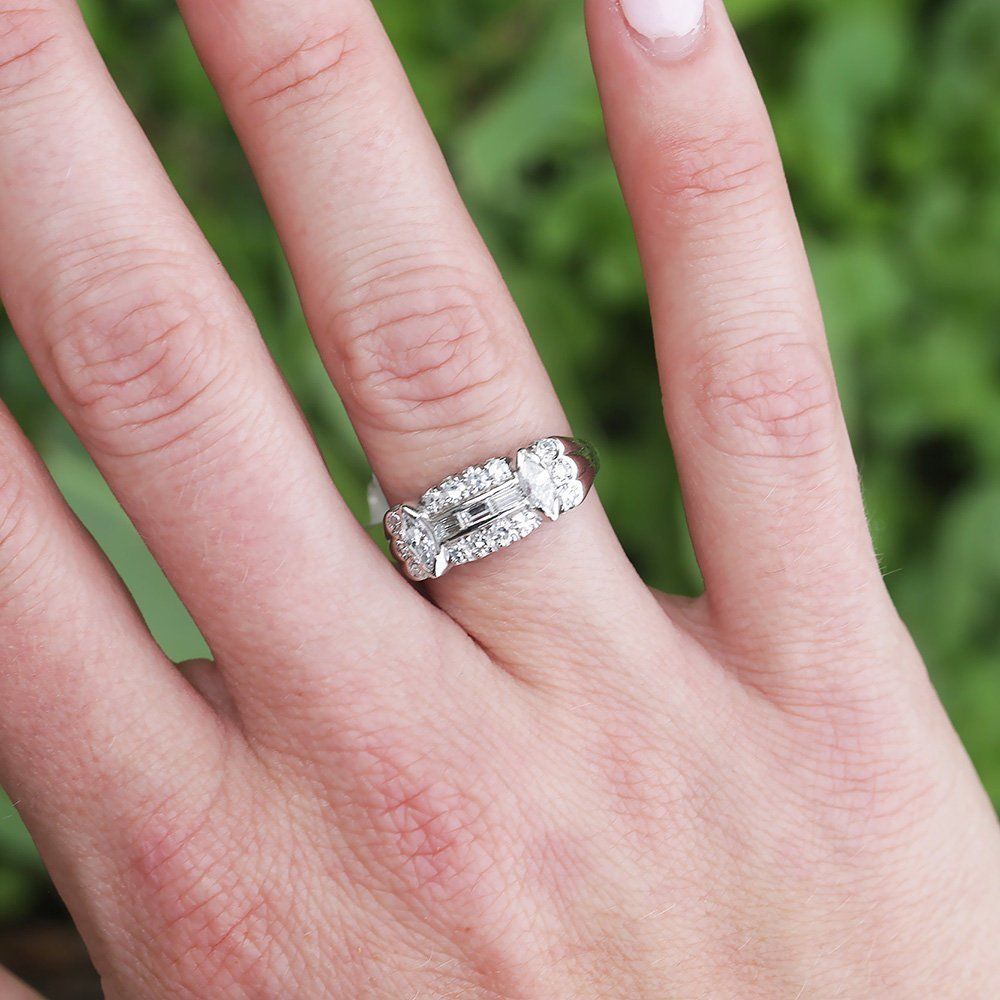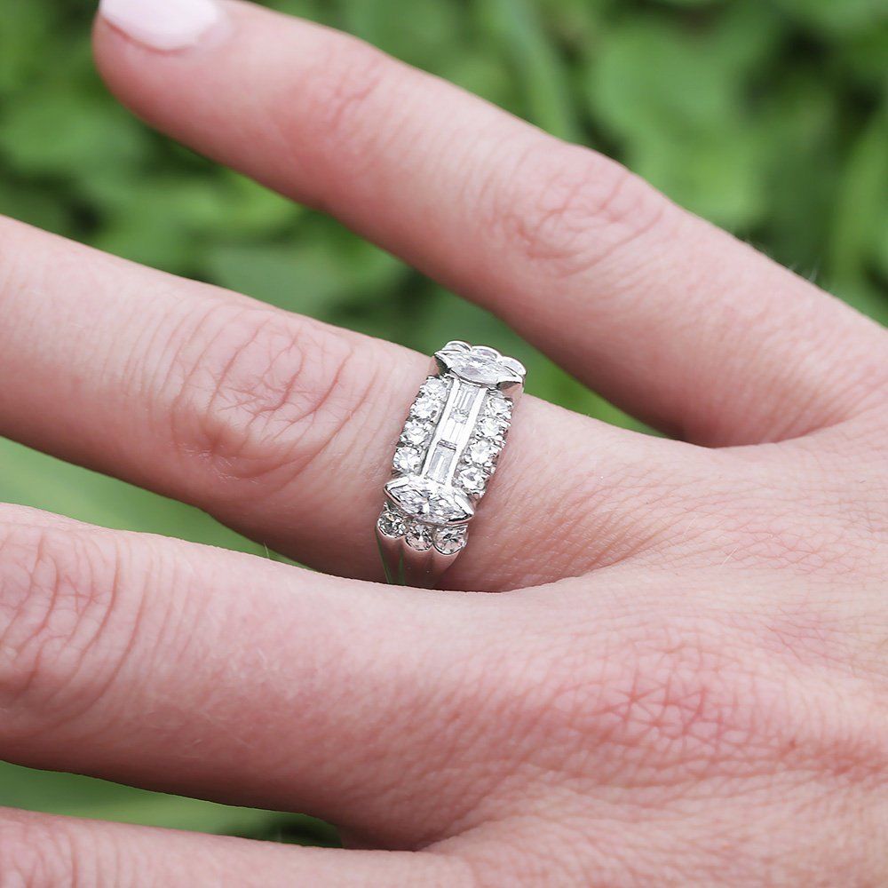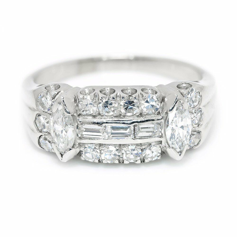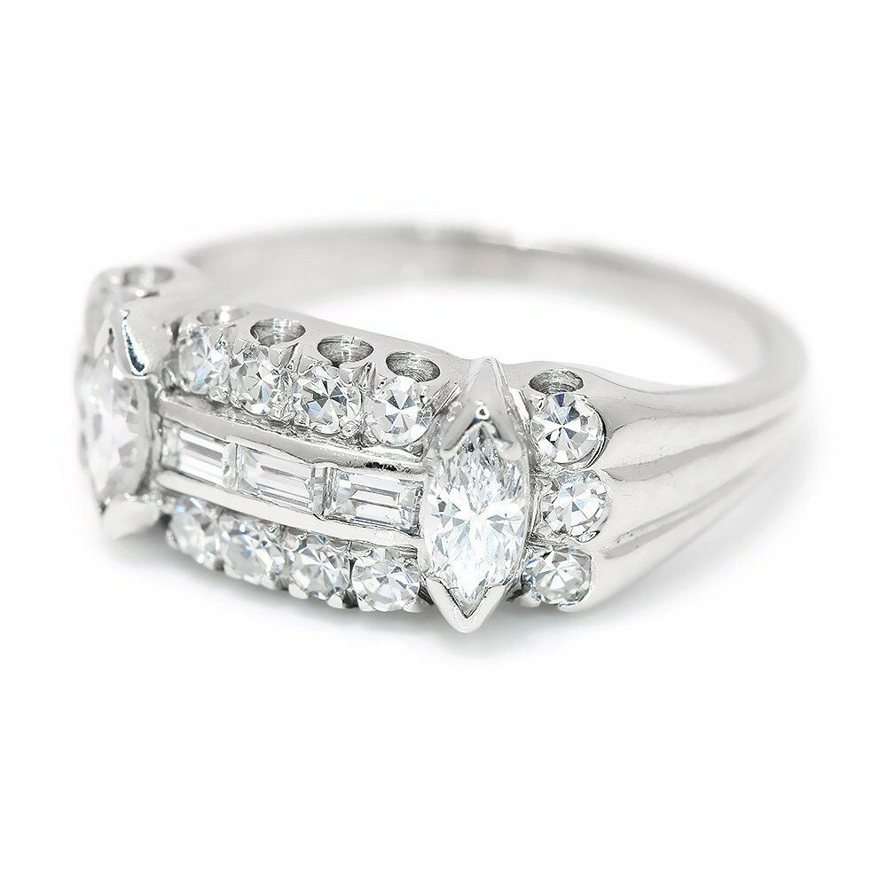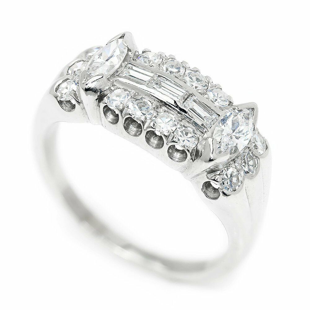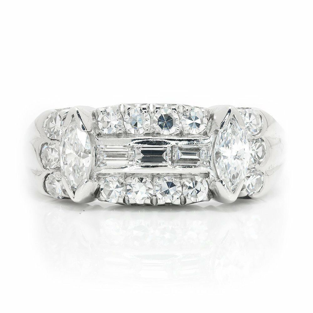 3ct Marquise Cut Diamond Art Deco Edwardian Engagement Ring 14k White Gold Over