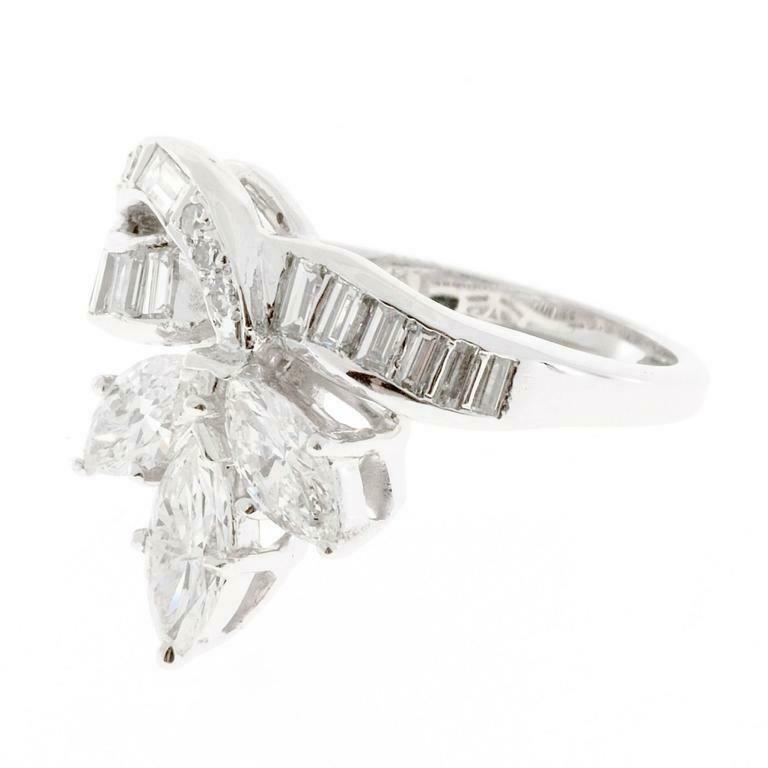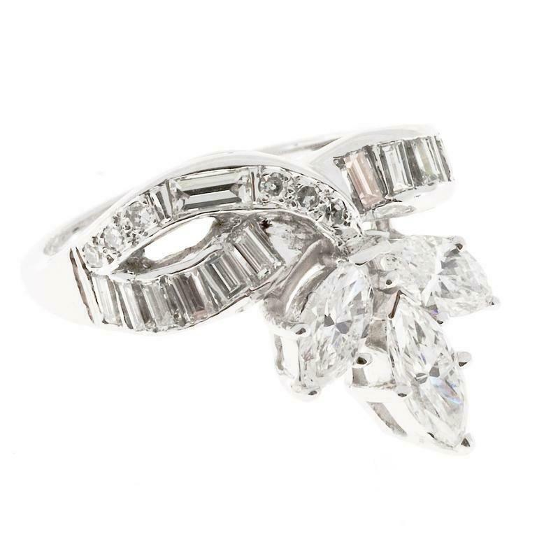 3ct Marquise Cut Diamond Engagement Ring Floral Leaf Art Deco 14k White Gold Over