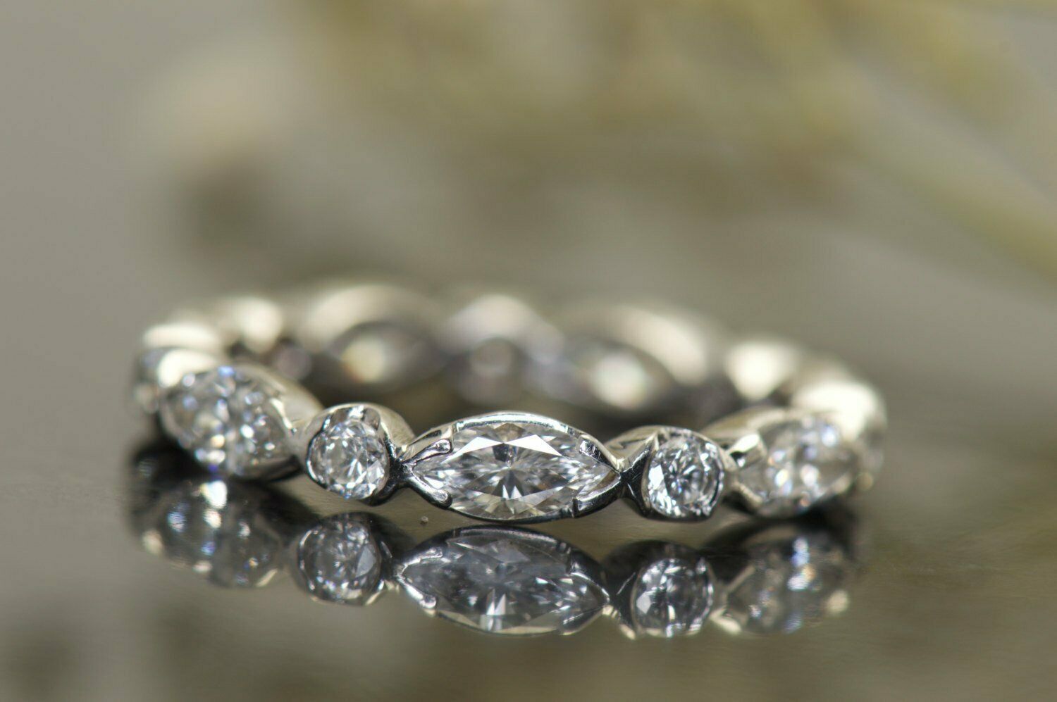 3Ct Marquise Cut Diamond Eternity Stackable Wedding Band 14K White Gold Finish