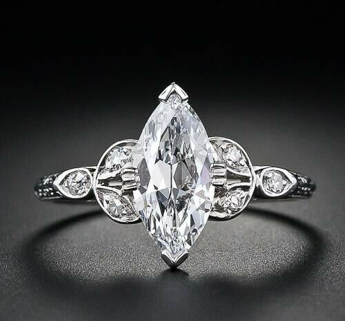3Ct Marquise Cut Diamond Leaf Vintage Accent Engagement Ring 14K White Gold Over