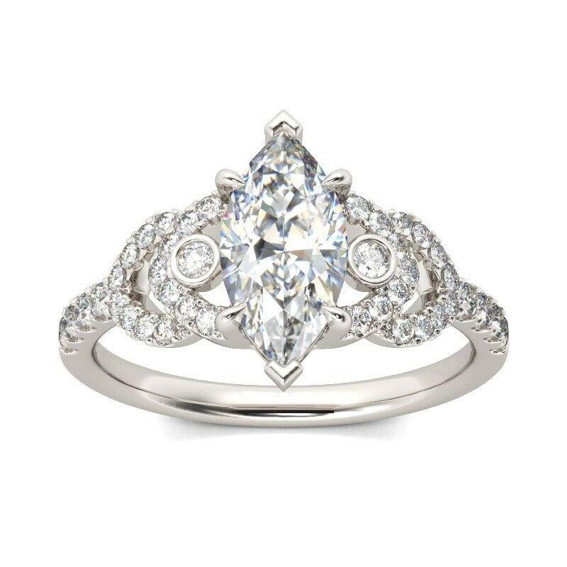 3Ct Marquise Cut Diamond Trendy Solitaire Engagement Ring 14K White Gold Finish