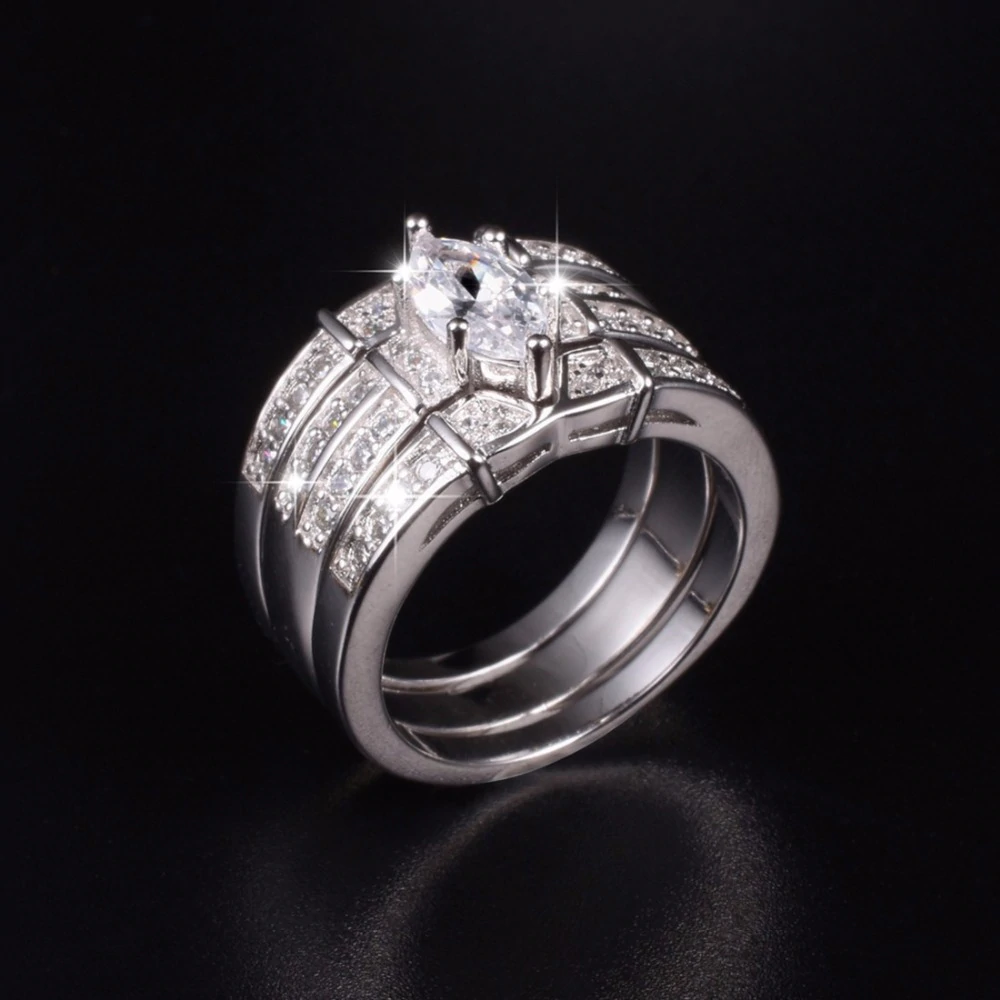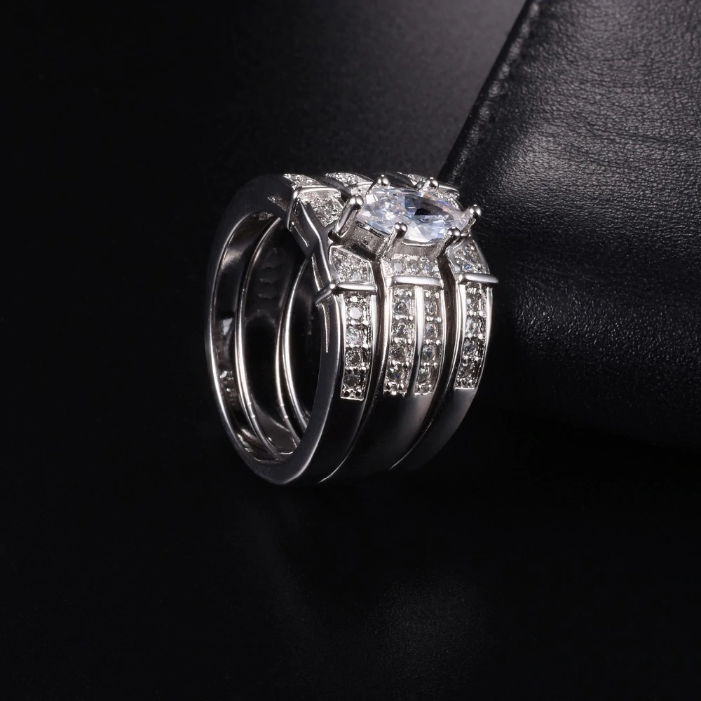 3ct Marquise Cut VVS1D Diamond Engagement Ring 14k White Gold Finish Trio Set