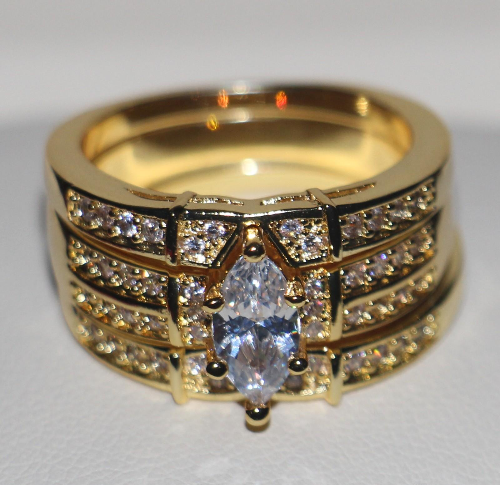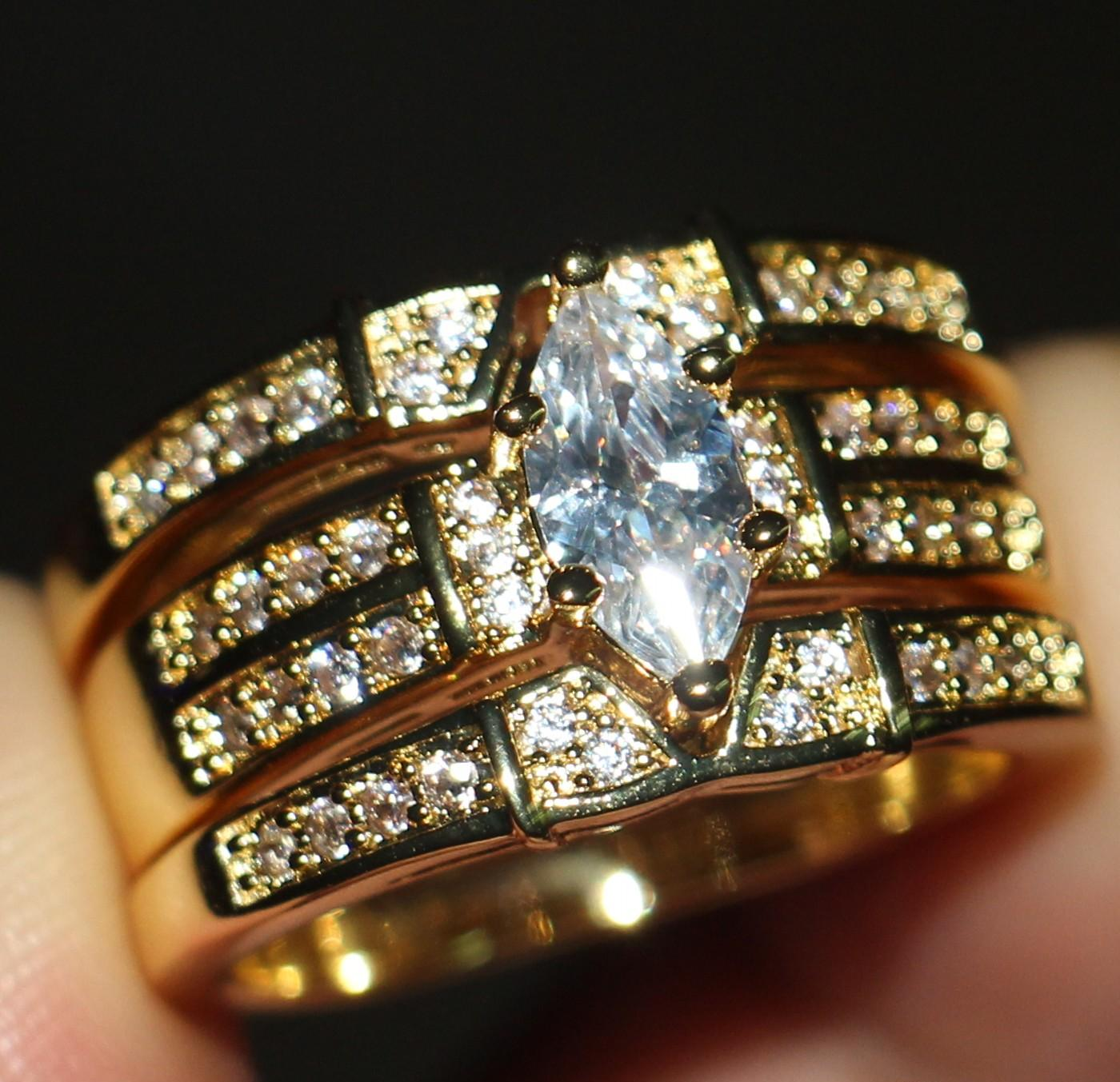 3ct Marquise Cut VVS1D Diamond Engagement Ring 14k Yellow Gold Finish Trio Set