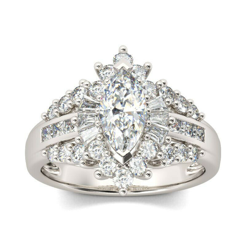 3Ct Marquise Diamond Halo Gatsby Cocktail Engagement Ring 18K White Gold Finish