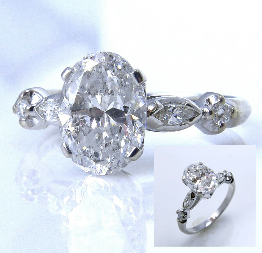 3Ct Oval Cut Diamond Accents Solitaire Engagement Ring 18K White Gold Finish