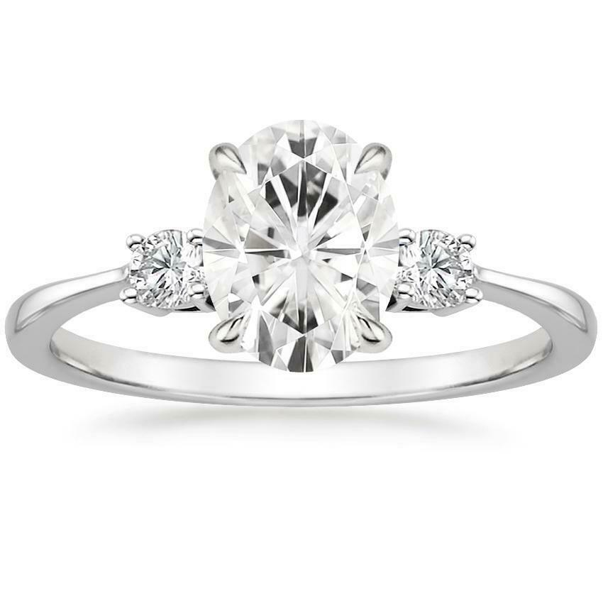 3ct Oval Cut Diamond Engagement Ring 14k White Gold Over Trilogy Round Accents