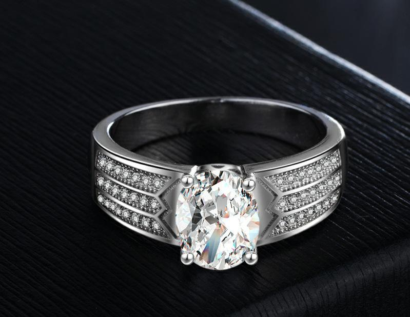 3Ct Oval Cut Diamond Solitaire Engagement Ring 18K White Gold Over Round Accents