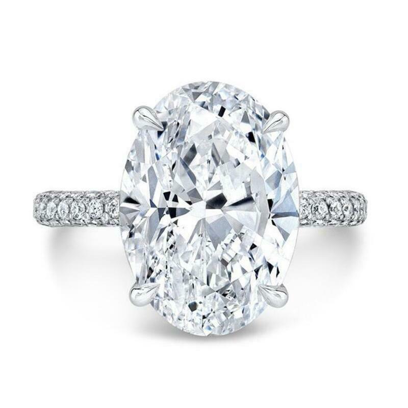 3Ct Oval Cut Diamond Solitaire Hidden Iced Band Halo Ring 14K White Gold Finish