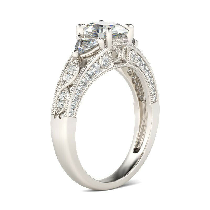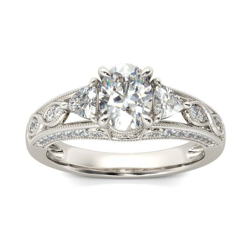 3Ct Oval Cut Diamond Trillion Accent Vintage Engagement Ring 14K White Gold Over