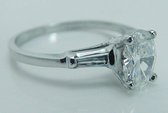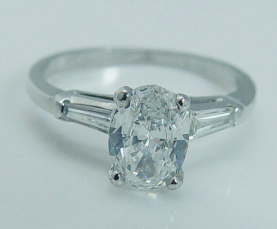 3Ct Oval Cut Diamond Trilogy Engagement Ring 14K White Gold Over Baguette Accent