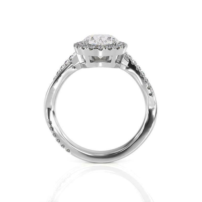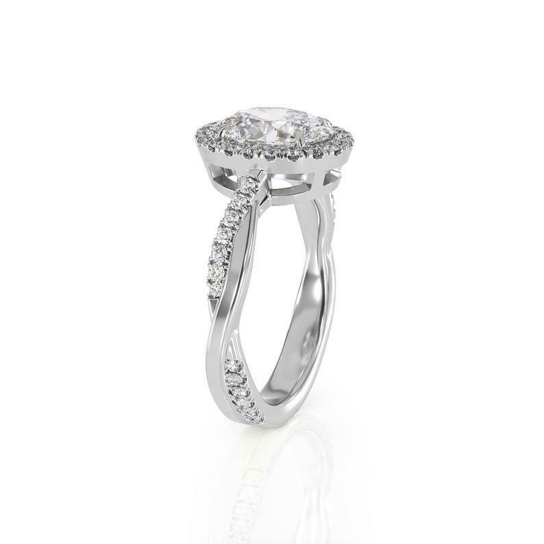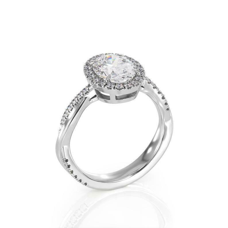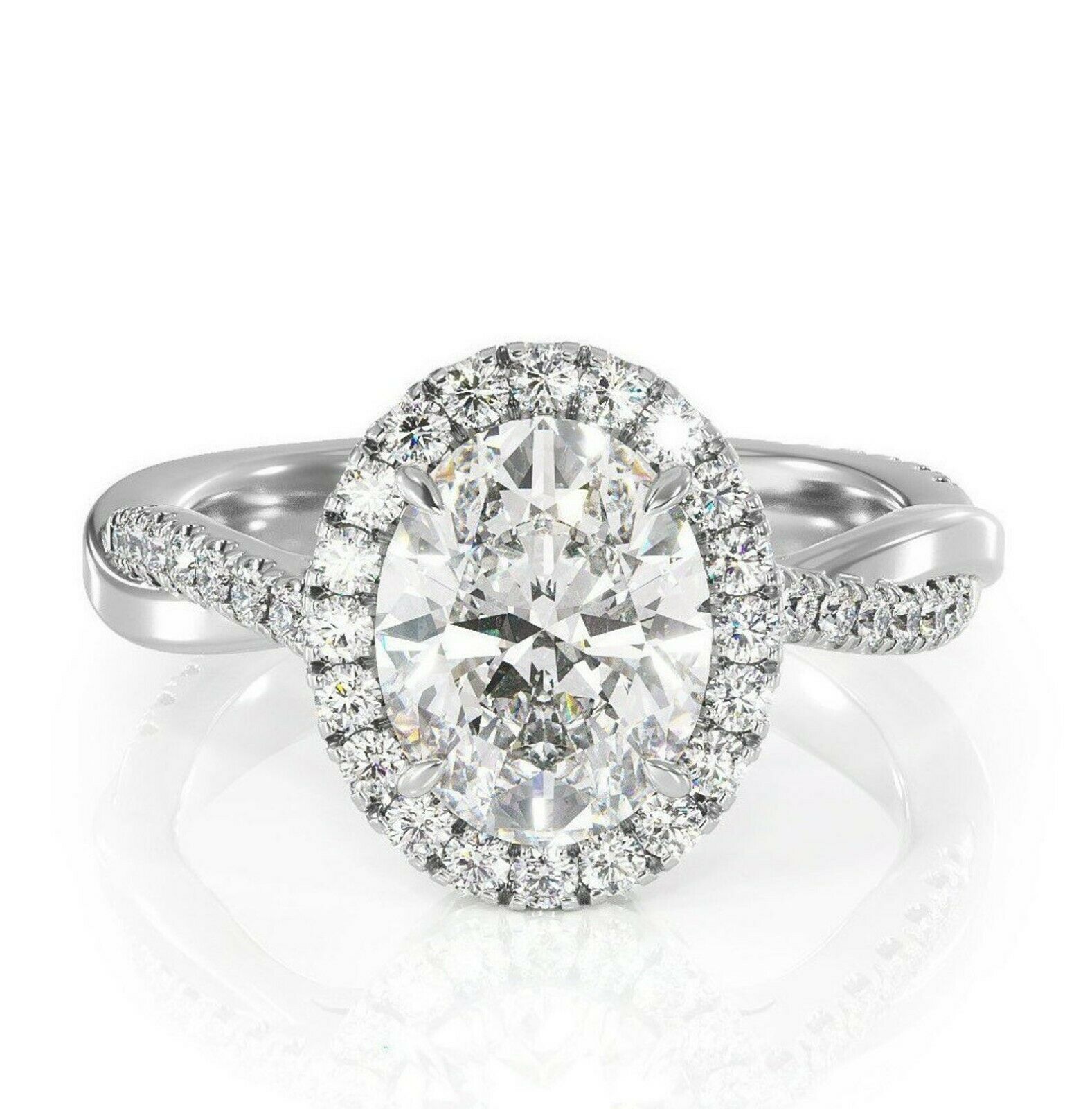 3ct Oval Cut VVS1D Diamond Engagement Ring Twist Shank Halo 14k WhiteGold Finish