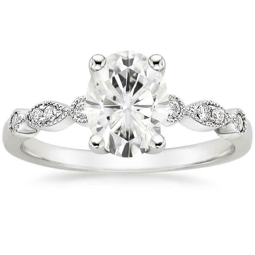 3ct Oval Diamond Engagement Ring 14k White Gold Over Vintage Accent Solitaire