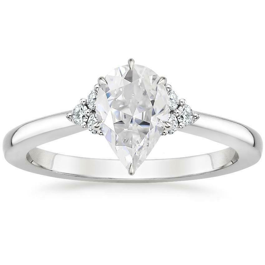 3ct Pear Cut Diamond Engagement Ring 14k White Gold Finish Solitaire with Accent