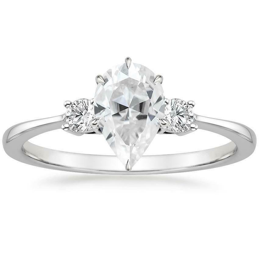 3ct Pear Cut Diamond Engagement Ring 14k White Gold Finish Trilogy Round Accents