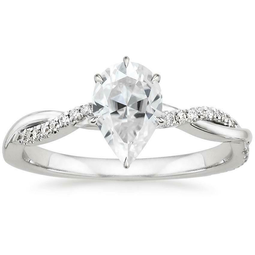 3ct Pear Cut Diamond Engagement Ring 14k White Gold Finish Twist Shank Solitaire