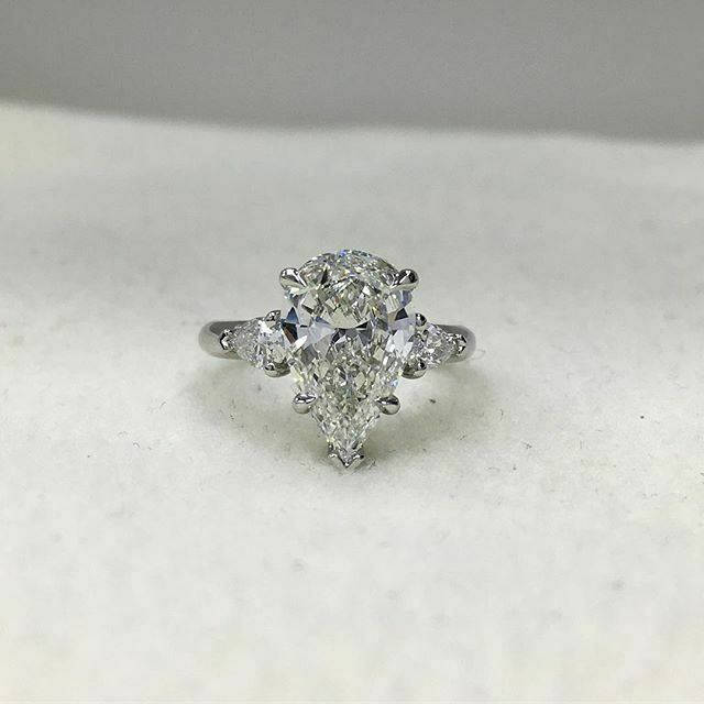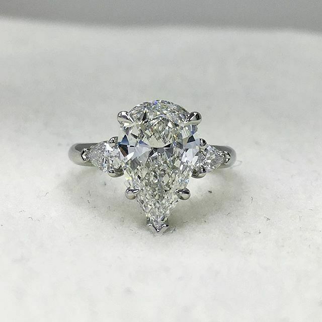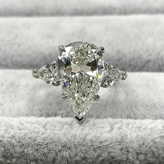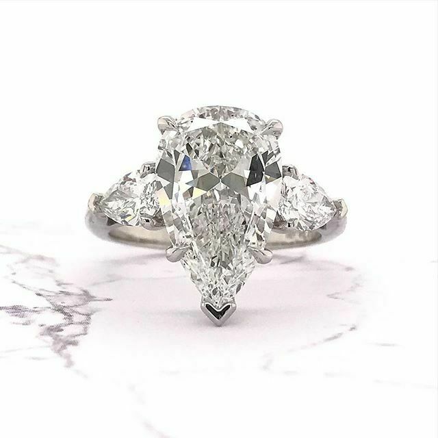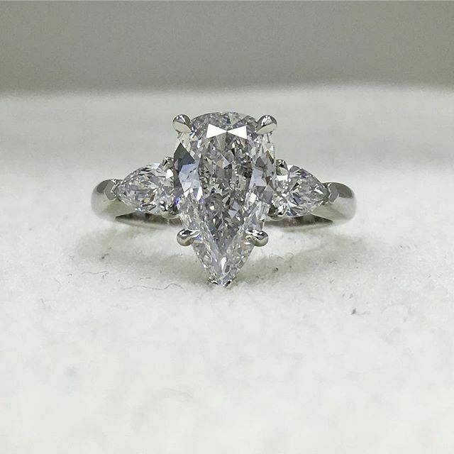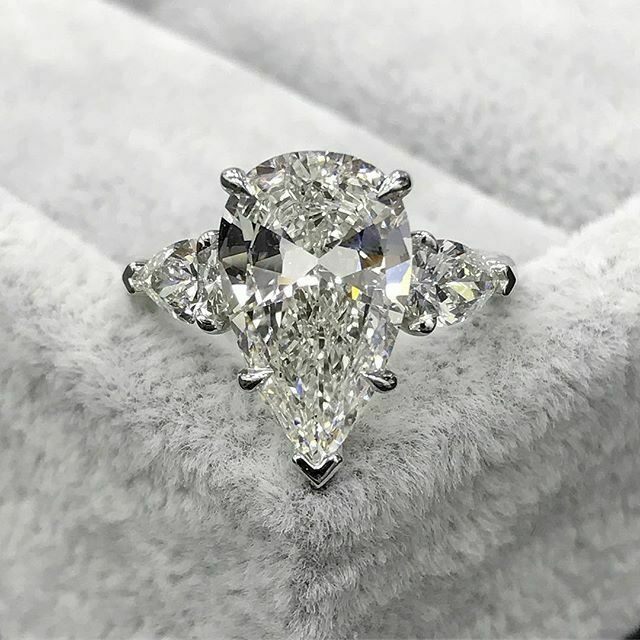 3Ct Pear Cut Diamond Three Stone Solitaire Engagement Ring 18K White Gold Finish