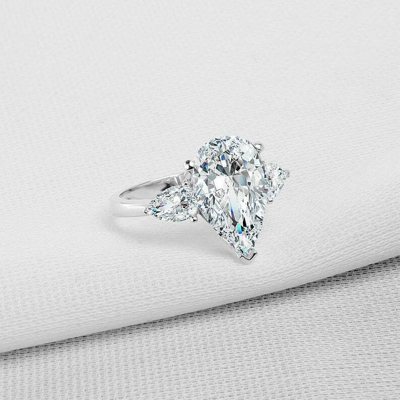 3ct Pear Cut VVS1D Diamond Engagement Ring Solitaire Trilogy 14k White Gold Over