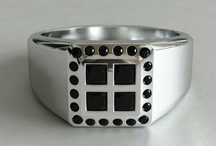 3ct Princess Cut Black Diamond Solitaire Men Engagement Ring 14k White Gold Over