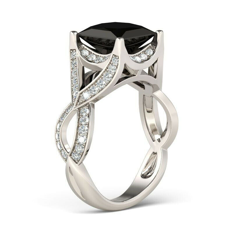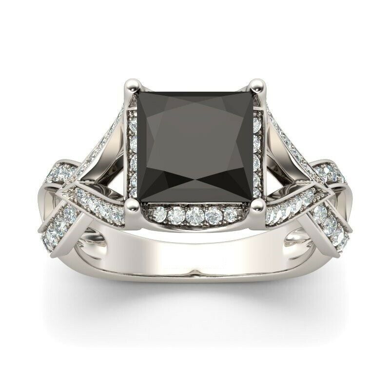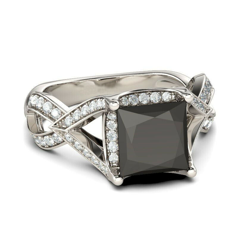 3Ct Princess Cut Black Diamond Split Shank Solitaire Ring 14K White Gold Finish