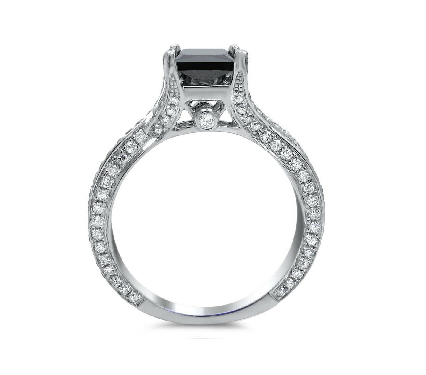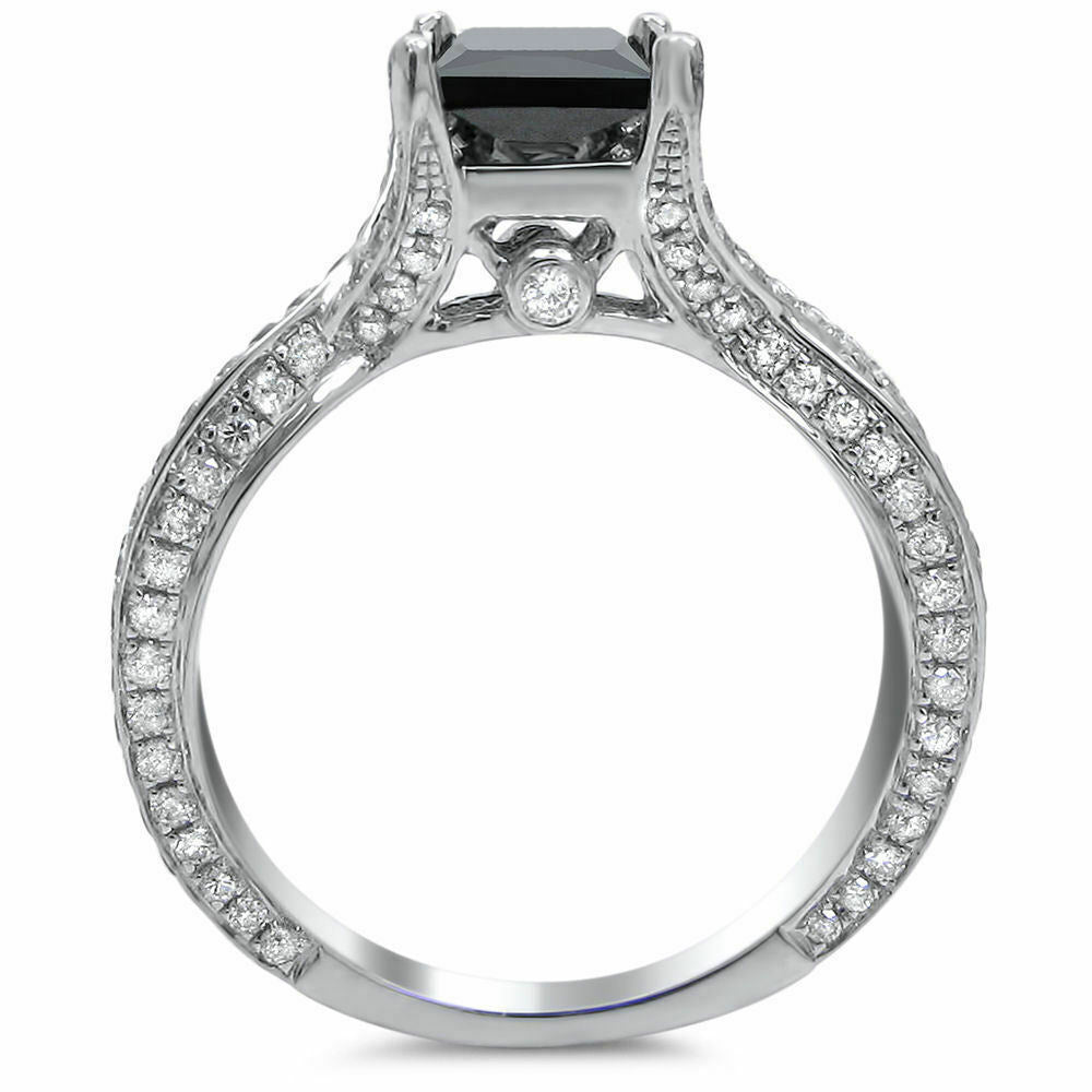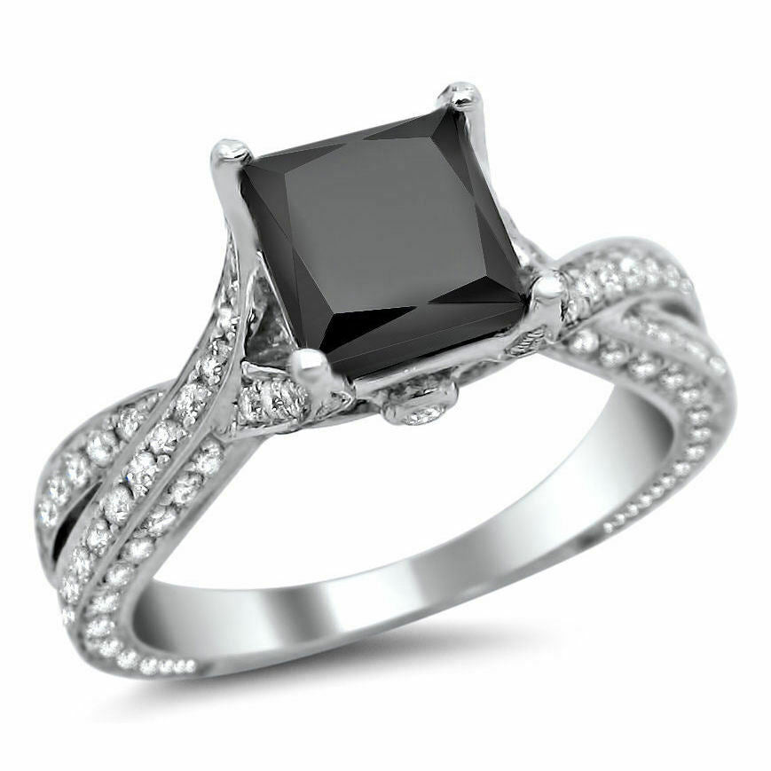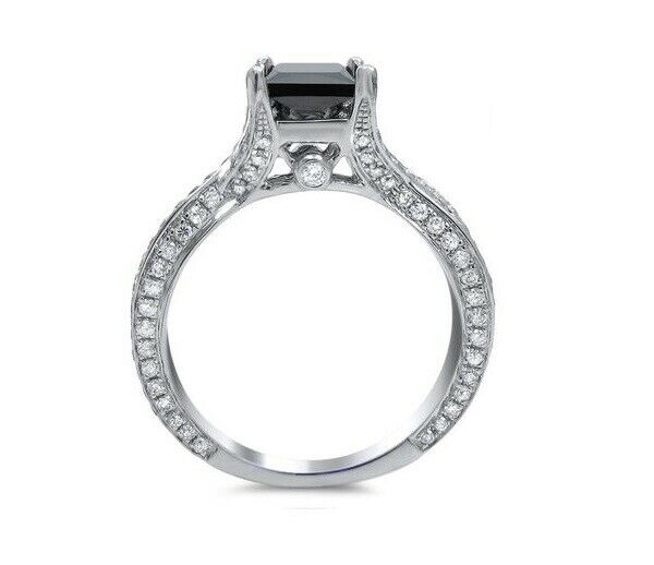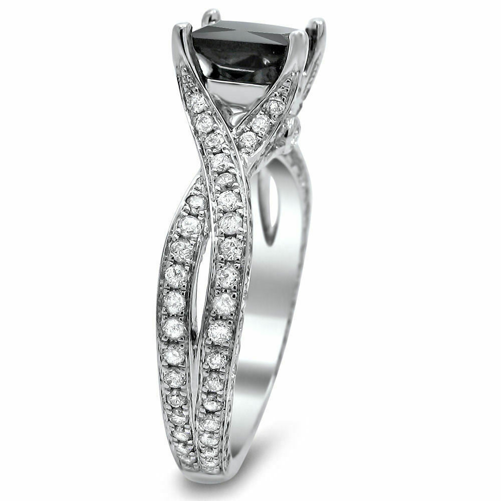 3Ct Princess Cut Black Diamond Split Shank Solitaire Ring 18K White Gold Finish