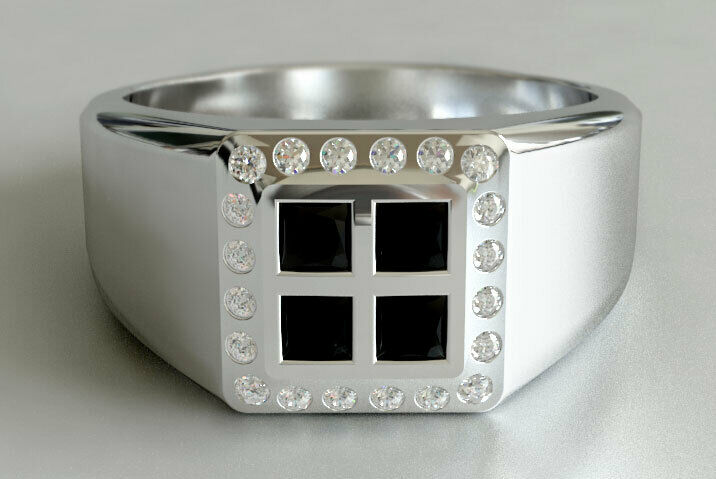 3ct Princess Cut Black Diamond Statement Men Engagement Ring 14k White Gold Over