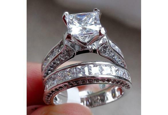 3ct Princess Cut Diamond Bridal Wedding Set Ring Band 14k White Gold Finish