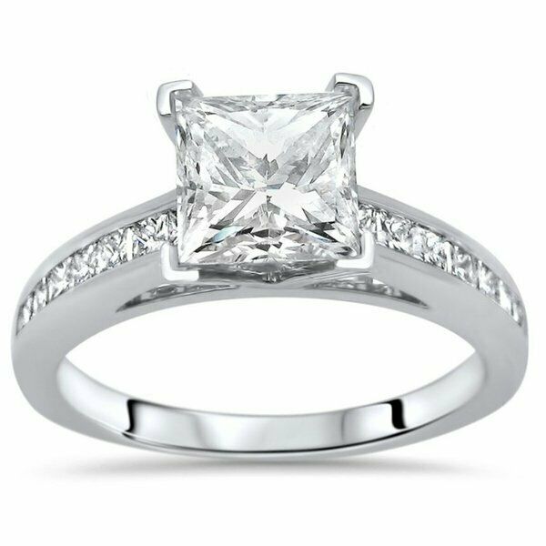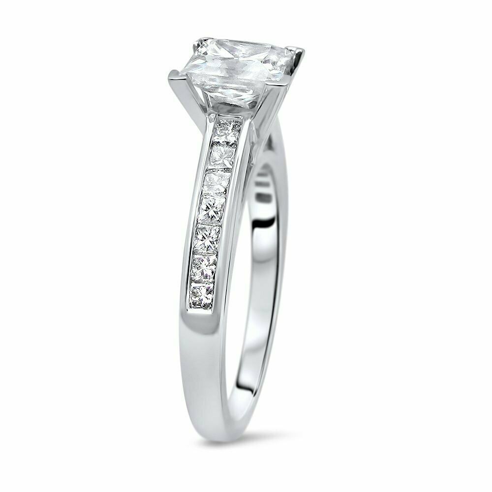 3Ct Princess Cut Diamond Engagement Ring 14K White Gold Over Channel Set Accents