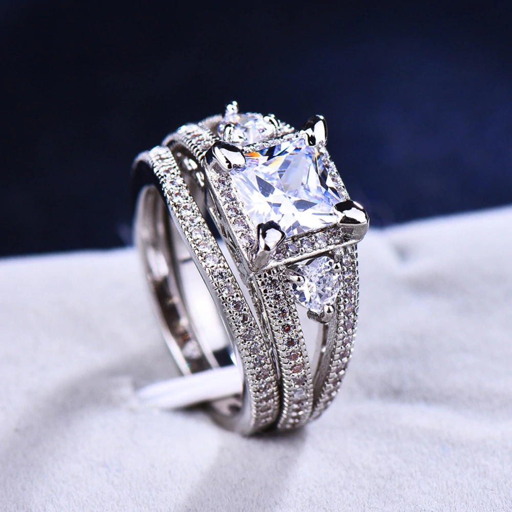3ct Princess Cut Diamond Engagement Ring 14k White Gold Over Milgrain Bridal Set