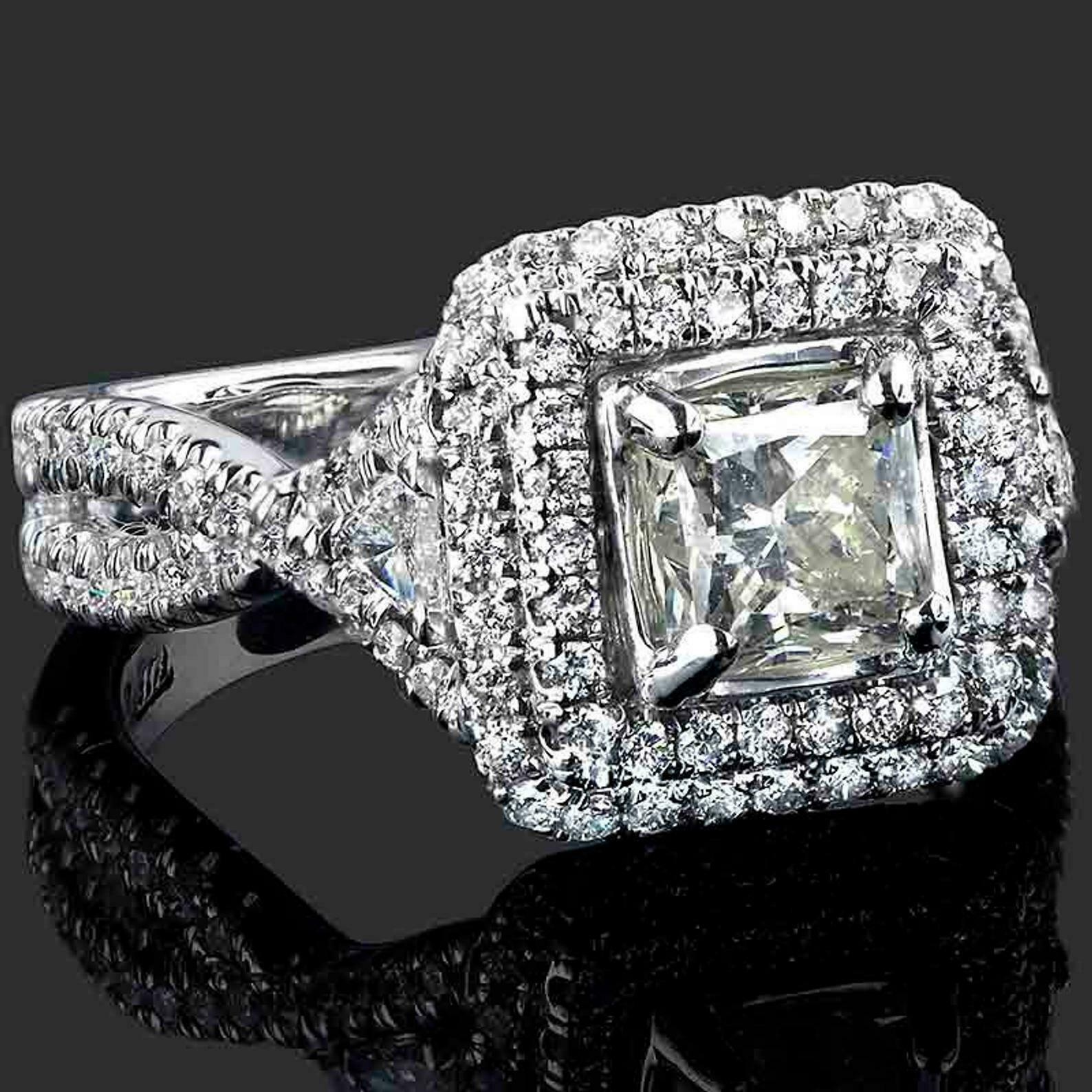 3ct Princess Cut Diamond Engagement Ring Dual Halo Split Band 14k White Gold Over
