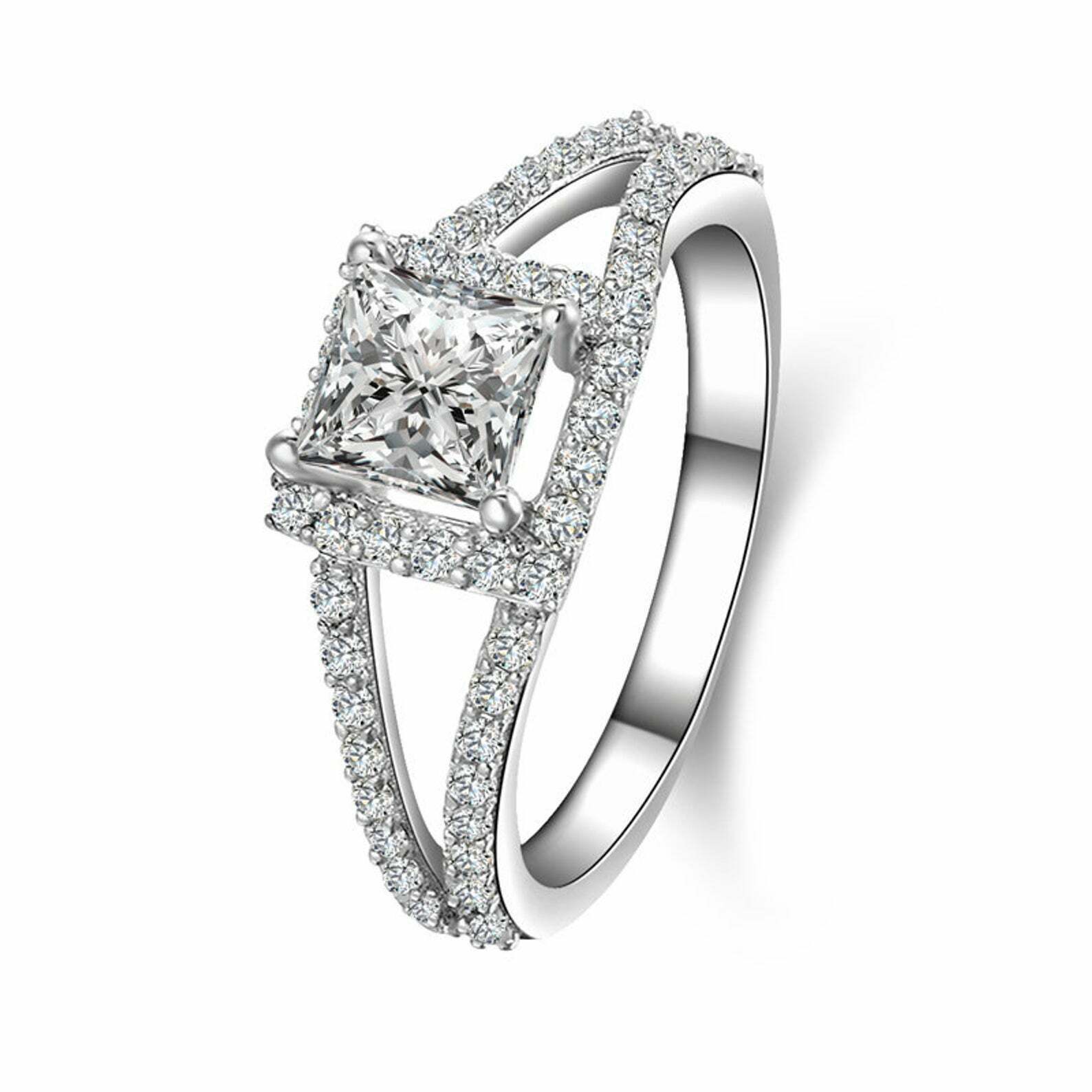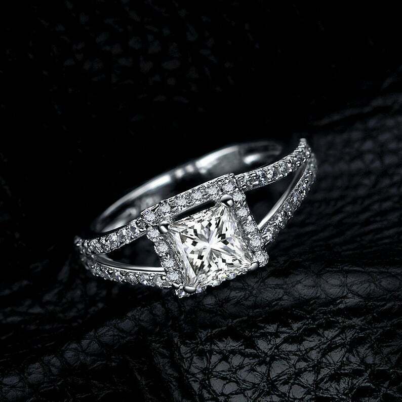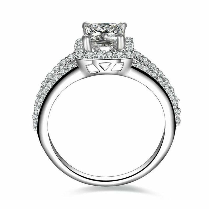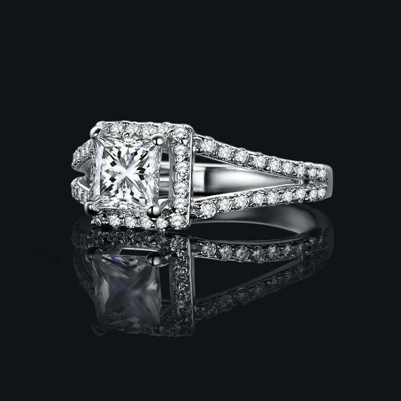 3ct Princess Cut Diamond Engagement Ring Halo 14k White Gold Finish Split Shank
