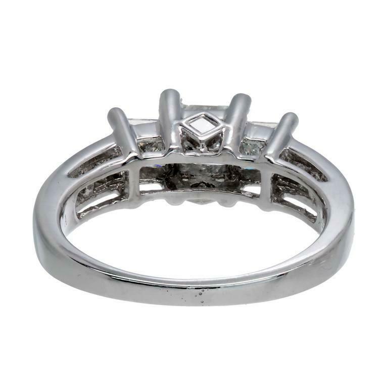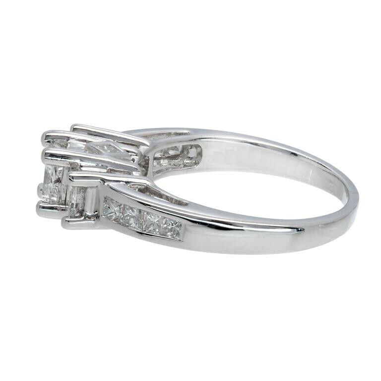 3ct Princess Cut Diamond Solitaire with Accent Trilogy Ring 14k White Gold Finish