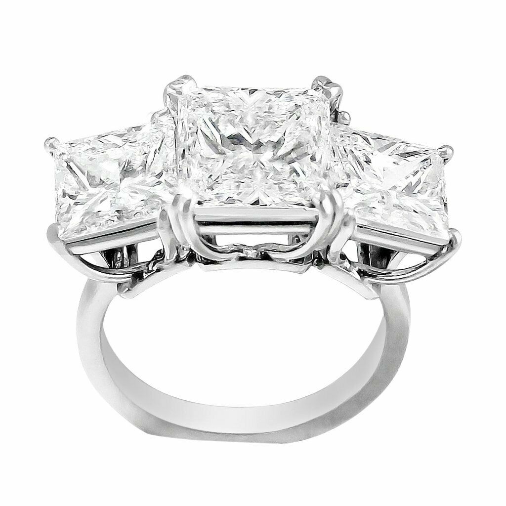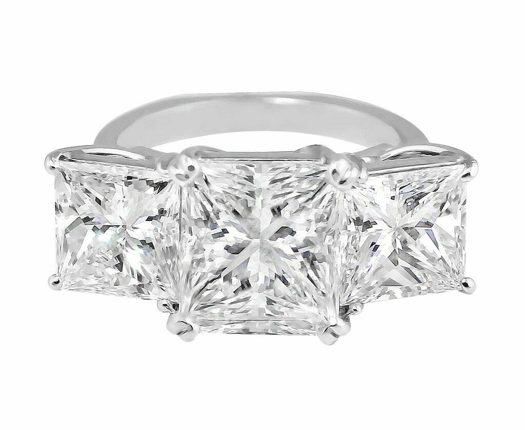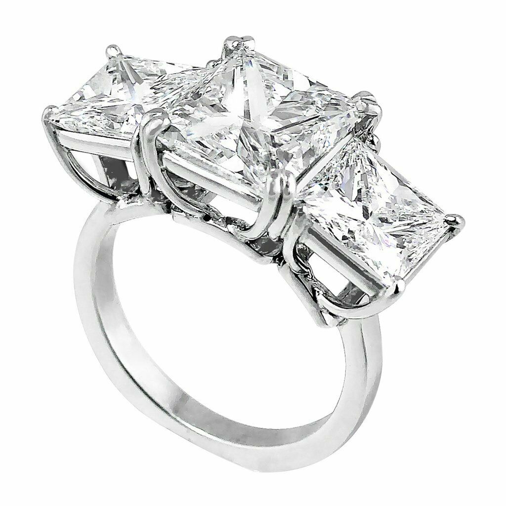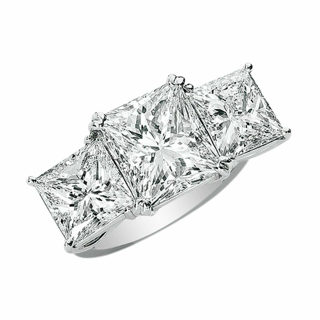 3Ct Princess Cut Diamond Three Stone Solitaire Engage Ring 14K White Gold Finish