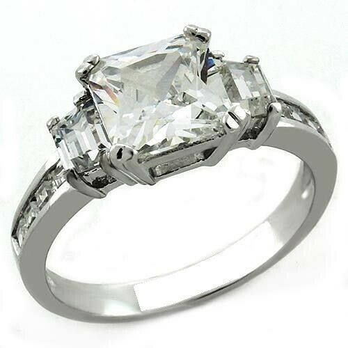 3Ct Princess Cut Diamond Trilogy Ring 14K White Gold Finish Trapezoid Accents