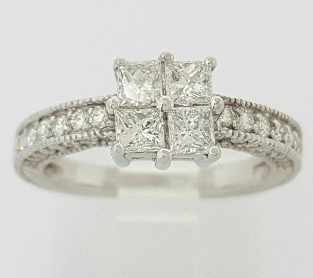 3Ct Princess Cut Diamond Unique Vintage Engagement Ring 14K White Gold Finish
