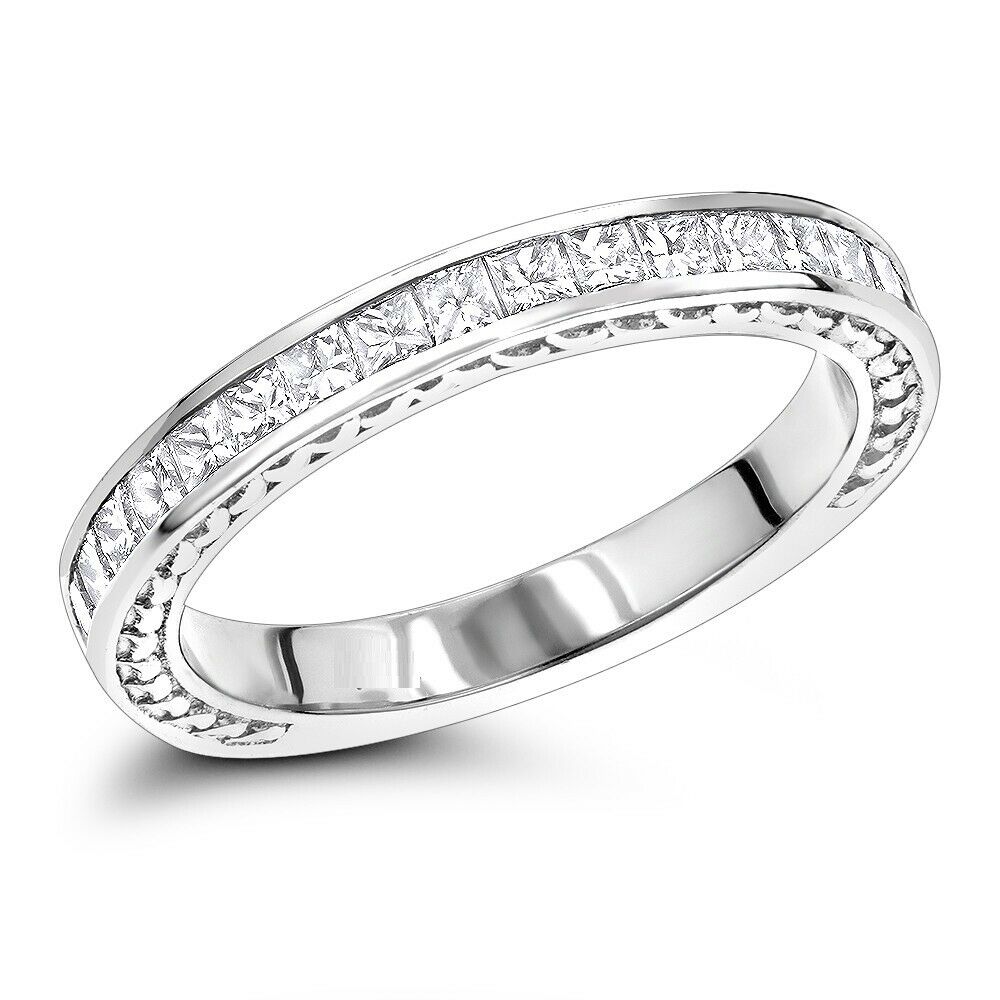 3Ct Princess Cut Diamond Vintage Half Eternity Wedding Band 14K White Gold Over