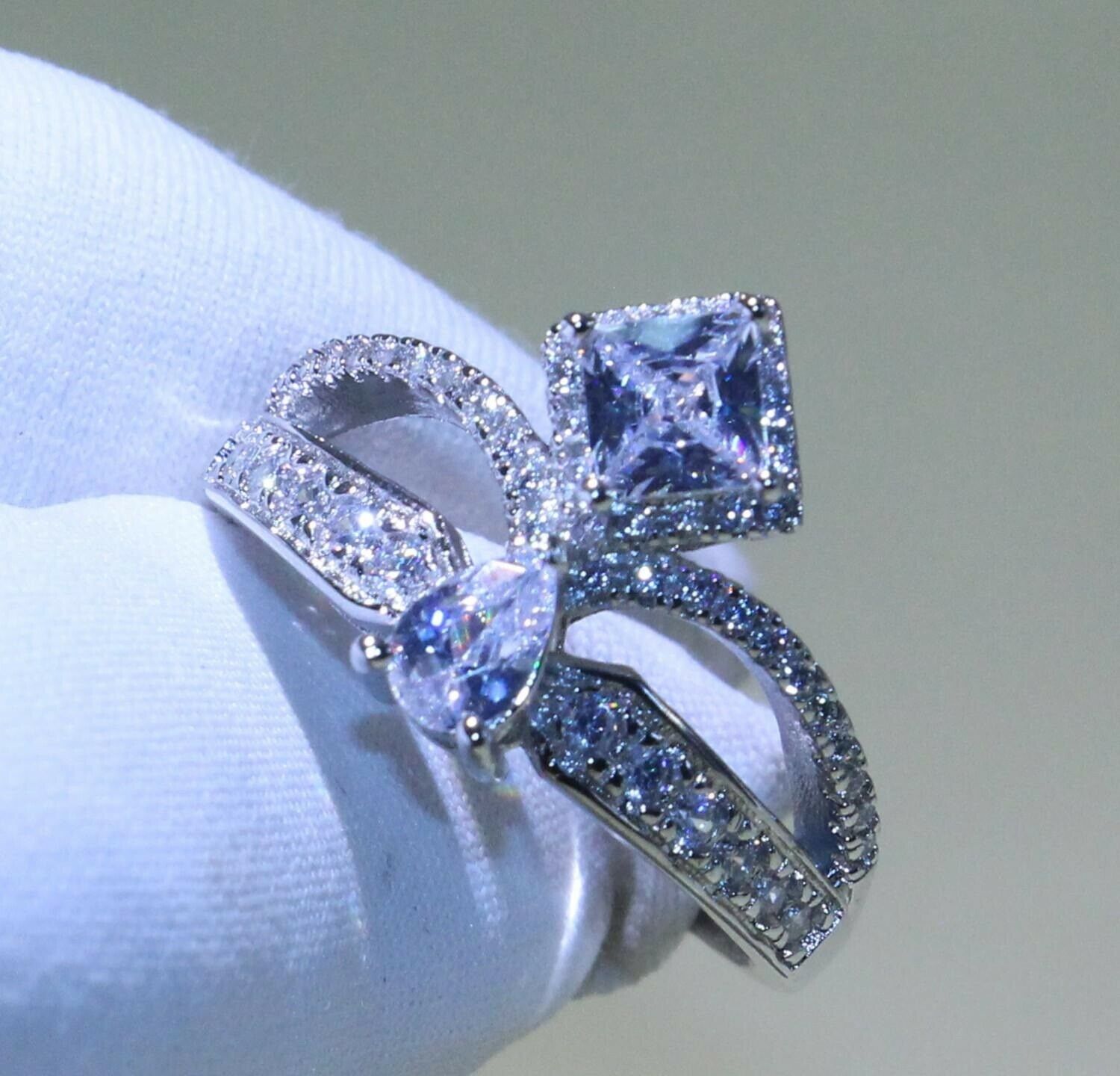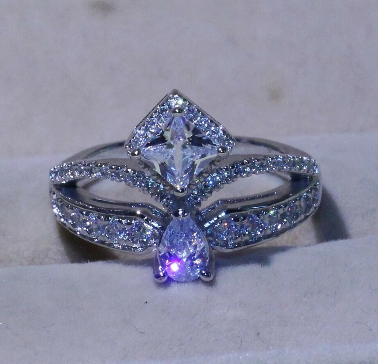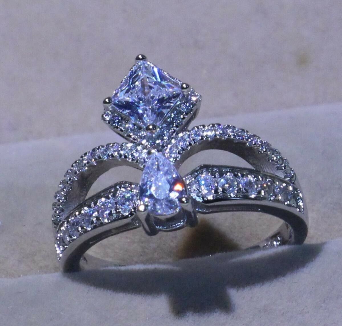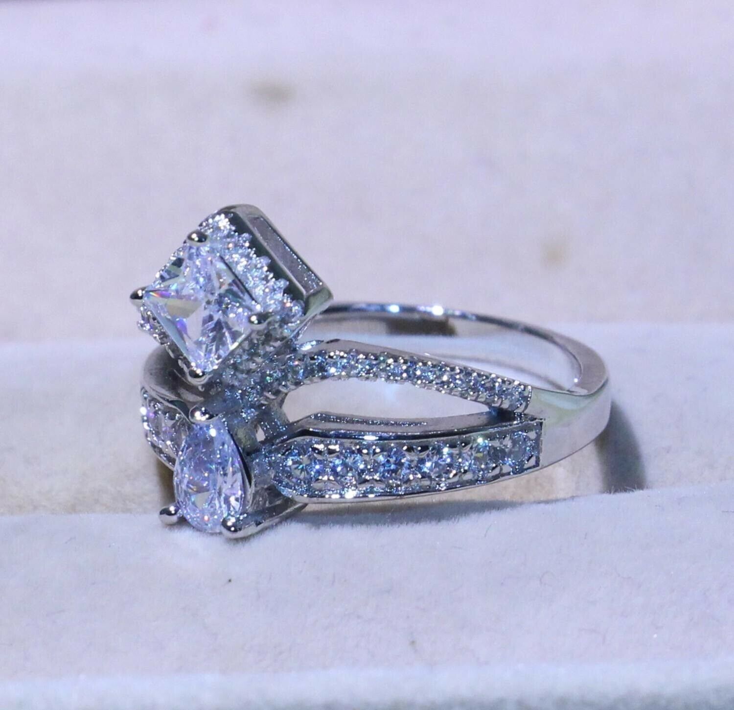 3ct Princess Cut VVS1 Diamond Engagement Ring 14k White Gold Finish Unique Crown