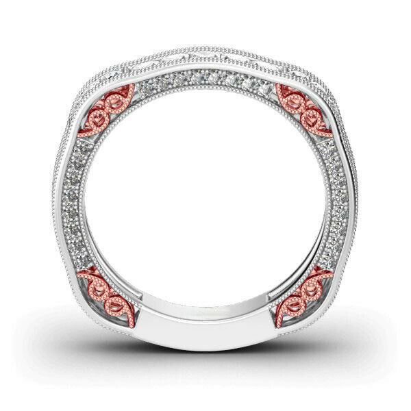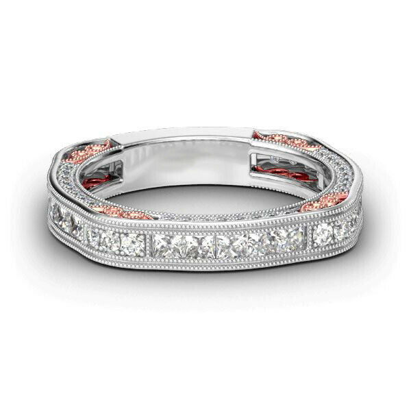 3Ct Princess Round Cut Diamond Milgrain Vintage Wedding Band 14K Dual Gold Over