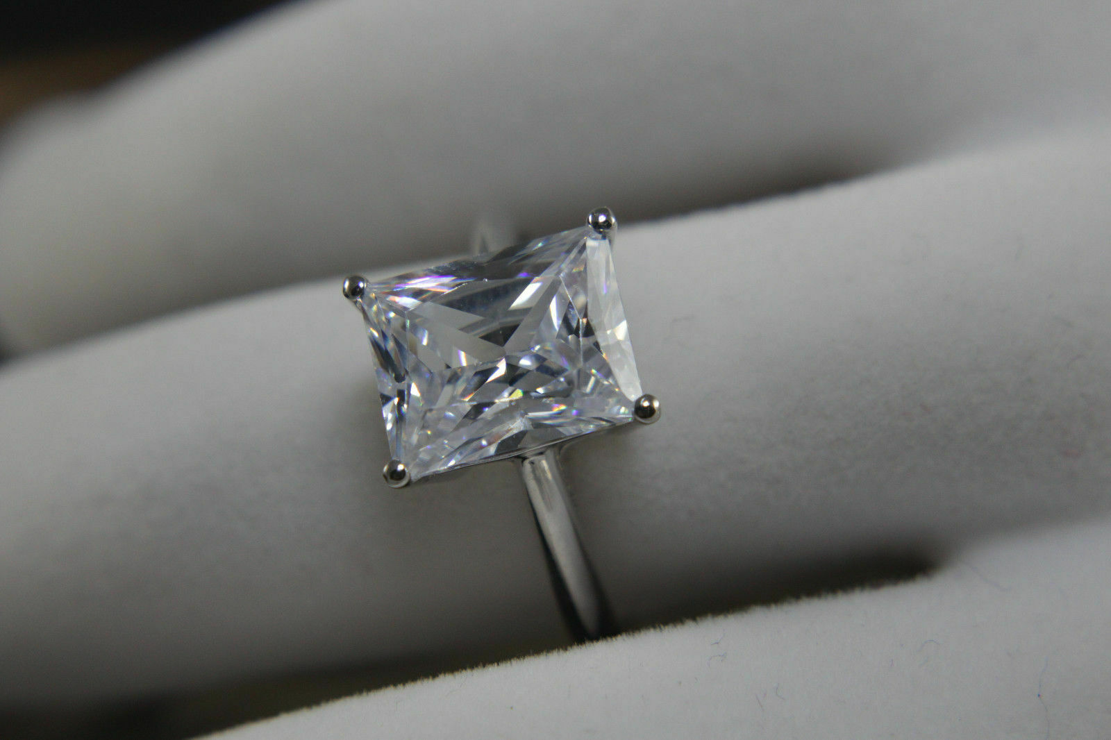 3Ct Radiant Cut Diamond Classic Solitaire Engagement Ring 14K White Gold Finish