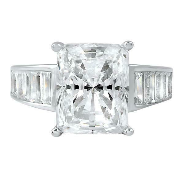3ct Radiant Cut Diamond Engagement Ring Solitaire Baguette 14k White Gold Finish